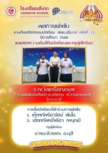 • การแข่งขันต่อศัพท์ภาษาอังกฤษ (Crossword) [ม.1-ม.3]