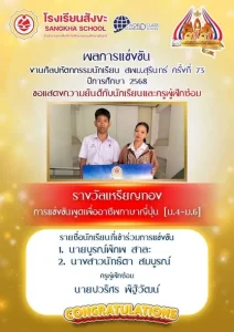 เบื้องหลังความสำเร็จในครั้งนี้ คือความพยายามอย่างไม่ย่อท้อของนักเรียนทุกคน และความทุ่มเทเอาใจใส่ของคุณครูผู้ฝึกซ้อมทุกท่าน โรงเรียนสังขะขอปรบมือดังๆ และขอเป็นกำลังใจให้ทุกคนพัฒนาศักยภาพของตนเองก้าวไปสู่ความสำเร็จในระดับที่สูงขึ้นต่อไปค่ะ 👏💖