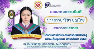 ขอแสดงความยินดีกับนางสาวปารียา บุญไทย นักศึกษาฝึกประสบการณ์วิชาชีพครู สาขาวิชาชีววิทยา